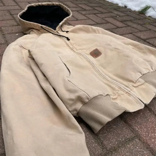 Vintage Carhartt J68 PTL Sandstone Hooded Work Jacket – Size Large